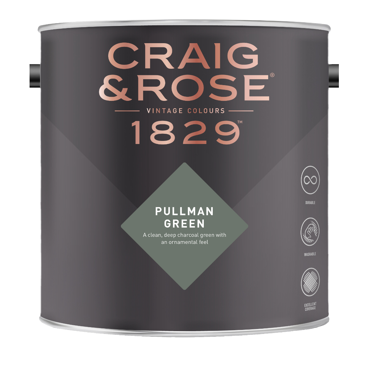 PULLMAN GREEN – Grown-up green. Stay grounded with this unstuffy, clean, and sophisticated green paint with a contemporary, refined aesthetic. Craig & Rose have crafted a fresh take on the plush ornamental greens often used in Victorian parlour rooms. Pullman Green has a charcoal base giving any wall a crisp modern evergreen finish. Freshen up your space with a green rooted in decadent history minus the weighty feel.